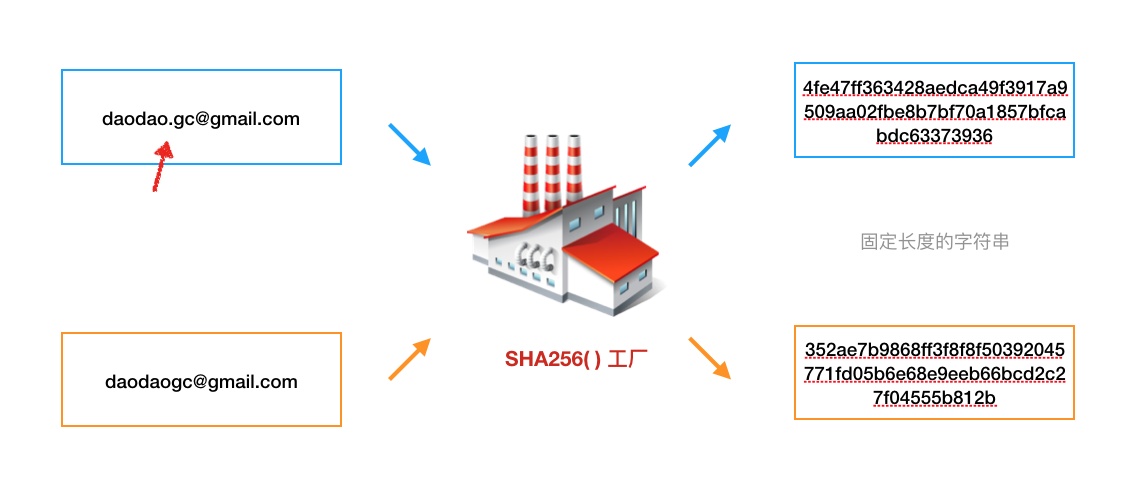 第一个知识点:SHA256()函数。你只需要知道,任意长度的字符串、甚至文件体本身经过SHA256函数工厂的加工,都会输出一个固定长度的字符串;同时,输入的字符串或者文件稍微做一丢丢的改动,SHA256() 函数给出的输出结果都将发生翻天覆地的改变。注意,SHA256()函数是公开的,任何人都能使用。