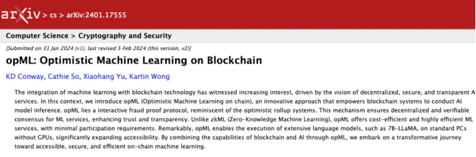 OAO基于opML在以太坊和Optimism上运行,生成可验证的人工智能推理。